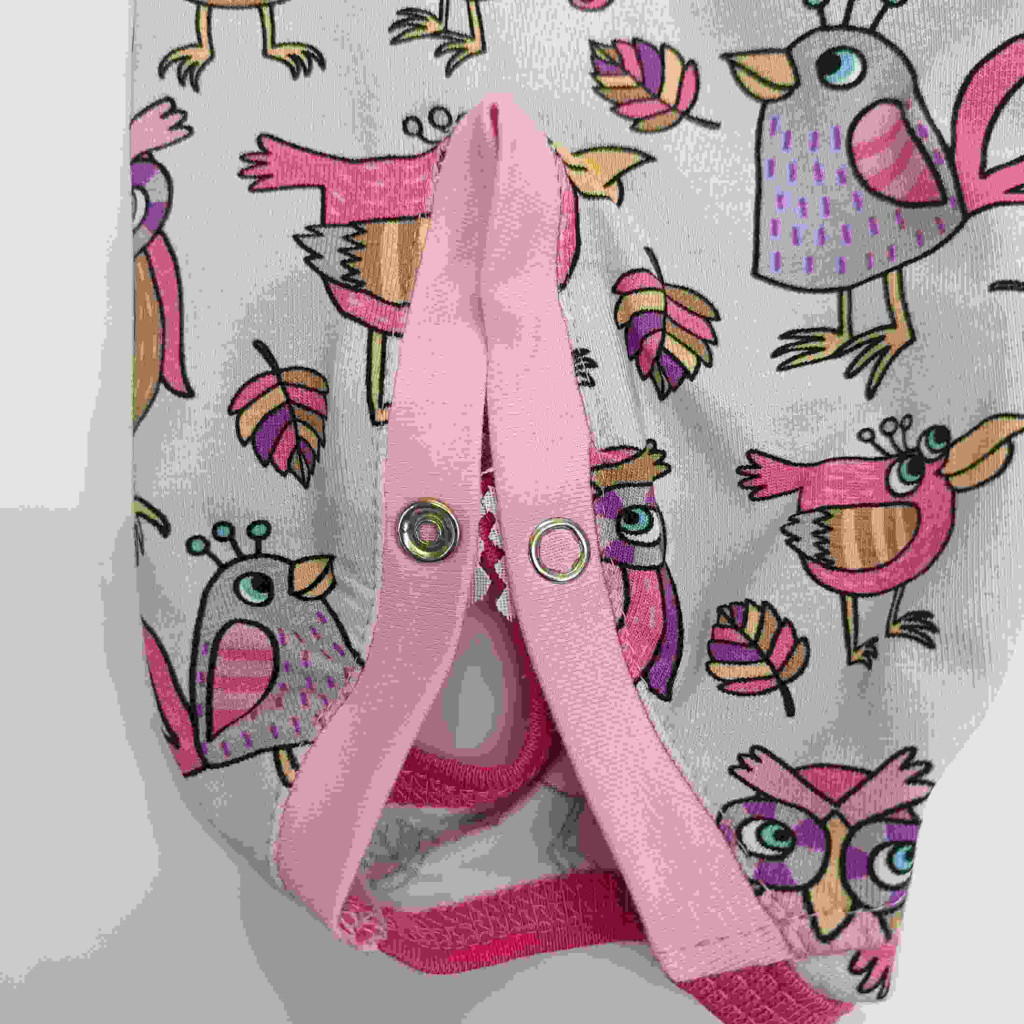 A ruha elöl bújtatós kialakítású, így a fej és a lábak felől könnyen feladható a kutyusra. A faroknál kialakított nyílás kényelmes viselést biztosít, a hátsó részen található patent segítségével pedig egyszerűen méretre igazítható.