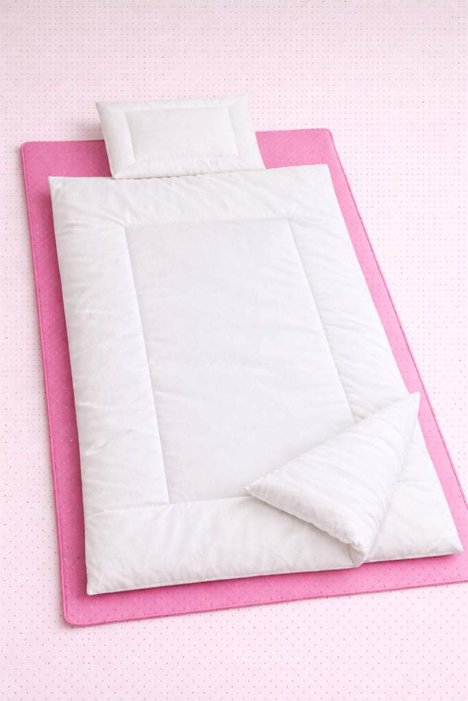A szett része egy 35 × 45 cm-es lapospárna, amely segít a baba fejének természetes alátámasztásában anélkül, hogy megemelné a nyakat. Ez különösen fontos az első hónapokban, amikor a baba gerince még fejlődésben van.